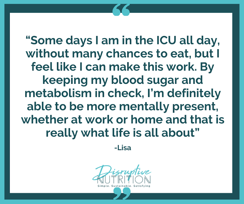 When you start that process of self-awareness, you can learn to be more intentional with your time and start to turn new strategies into automatic habits. However, making long-term changes can be challenging, this is why it is so important to have the support of a community and accountability partners. This is one of the things I love most about Disruptive Nutrition...our community!